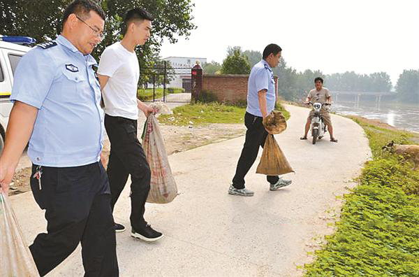6月22日凌晨,汝南县森林公安局民警巡逻至留盆镇殷湾村时,发现河道内有可疑光源在晃动,经过侦查,当场抓获正在捕捉青蛙的犯罪嫌疑人黄某某,查获抄舀一把、矿灯两个以及装有青蛙的编织袋4个、电动三轮车一辆。经清点,编织袋中装有青蛙544只。固定相关证据材料后,汝南县森林公安局将这544只青蛙在宿鸭湖湿地放生(如图)
