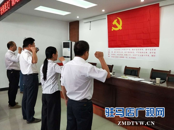7月1日上午9点,汝南县文广新局全体党员着正装、戴党徽,重温入党誓词, 纪念建党97周年,开展“不忘初心、牢记使命”主题党日活动。
