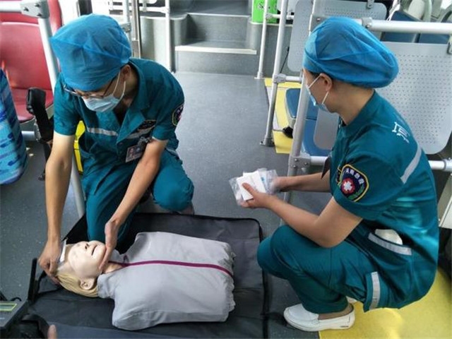 针对车长们在行车途中可能遇到的中暑、低血糖、突发癫痫、晕倒及皮外伤出血等突发状况,急救科的医护人员对车长们做了详细的急救处置培训。