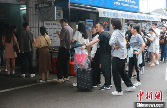 图为游客在柳州螺蛳粉店前排起长龙。 中新社记者 林馨 摄