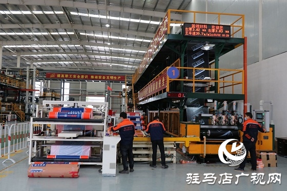 防水产业是平舆县重点产业,在防水材料产业园的蓝翎环科有限公司,自动化生产线正在运作,诺大的车间内只需要几名工人来回巡视,实时查看机器运转情况。