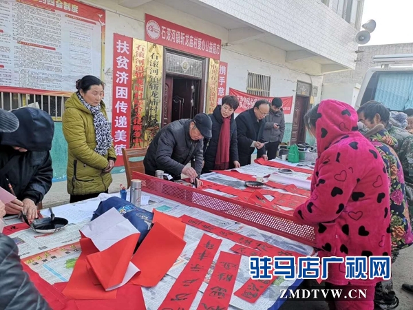 【驻马店广视融媒讯】(通讯员 王志波)为使广大农村群众过一个欢乐、祥和、热闹、喜庆的春节,连日来,驻马店确山县委宣传部、确山县文化广电新闻出版局、确山县文联、确山县教体局等单位纷纷组织本县知名书法家,分赴瓦岗、石滚河、留庄三个乡镇的五个行政村积极开展“迎新春义写春联下乡”活动,深受广大群众的欢迎和好评。