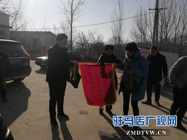 【驻马店广视融媒讯】(通讯员 霍纯玉)1月23日上午,驻马店确山县瓦岗镇下沟村村委门前鞭炮齐鸣,热闹非凡。该村么角棚组贫困户何全喜夫妇向结对单位确山县卫生计生监督所、下沟村委和结对帮扶人黄辉同志送上一面“扶贫助困显真情 真心帮扶暖人心”的锦旗。