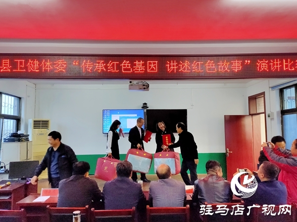 驻马店广电融媒体消息:为深入贯彻习近平总书记关于“不忘初心、牢记使命”主题教育重要讲话精神,弘扬革命先烈丰功伟绩,继承革命先辈优良传统,11月18日,确山县卫健体委组织委属各单位党支部举办以“传承红色基因、讲述红色故事”为主题的演讲比赛。