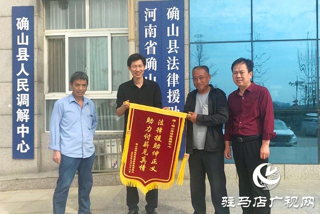 9月28日,在确山县城建筑工地务工的王某将一面锦旗送到了确山县司法局法律援助中心,他激动地说:“我们11个人的工资全部要回来了,一分也不欠了!”