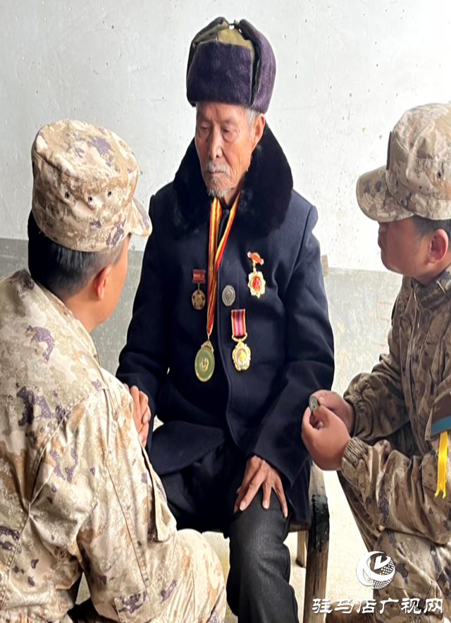 3月27日,某驻军部队慰问确山县竹沟镇王岗村鲍国青、马双全两名参加过抗美援朝志愿老兵。
