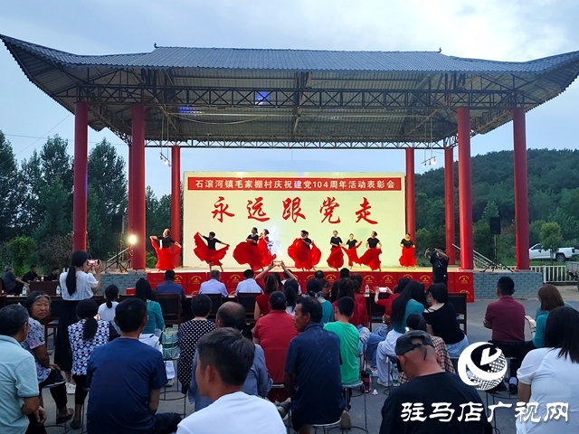 为热烈庆祝中国共产党成立104周年,弘扬伟大建党精神,6月30日,确山县石滚河镇毛家棚村举办庆祝建党104周年文艺晚会。