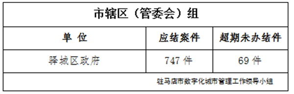 2022年1月10日-2022年1月16日,驻马店市智慧城市服务中心通过采集员、网格员采集上报、视频抓拍、领导交办等途径受理各类城市管理案件4324件,本周应结案3265件,其中已结案2993件,超期未办结120件,结案率91.67%,所有案件均通过数字城管系统派遣交办至20个联动单位,经采集员核查,截至1月16日18时,存在超时未办结案件的单位共6个,详细情况如下: