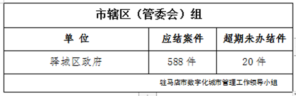 2022年3月14日-2022年3月20日,驻马店市智慧城市服务中心通过采集员、网格员采集上报、视频抓拍、领导交办等途径受理各类城市管理案件3653件,本周应结案2652件,其中已结案2411件,超期未办结38件,结案率90.91%,所有案件均通过数字城管系统派遣交办至20个联动单位,经采集员核查,截至3月20日18时,存在超时未办结案件的单位共3个,详细情况如下: