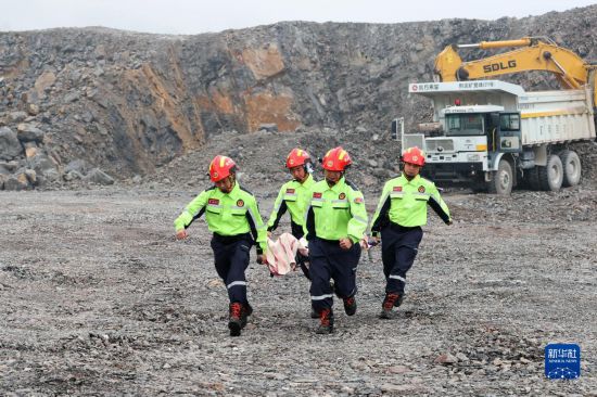 5月9日,在重庆市黔江区一露天非煤矿山演练现场,救援队员转移“被困人员”。