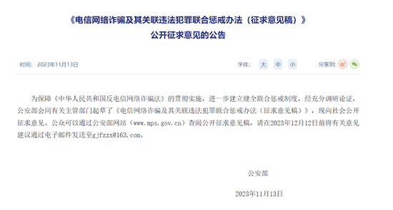 公安部对电诈和关联犯罪惩戒办法公开征求意见