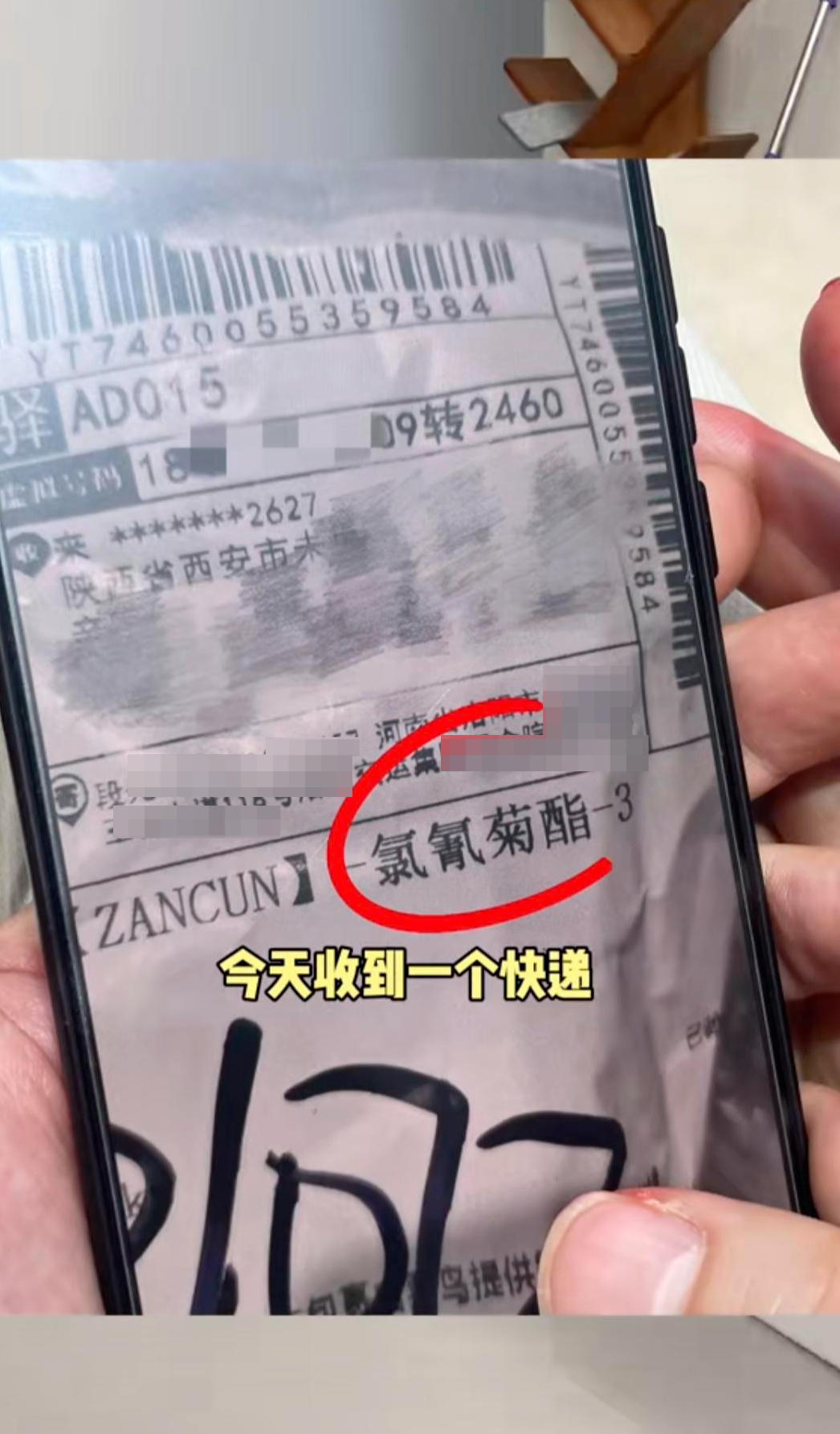 近日,有西安网友在网上发布短视频,称其收到的一份未知快递中,外包装写着氯氰菊酯,打开接触后手部皮肤出现轻微化脓和腐蚀。