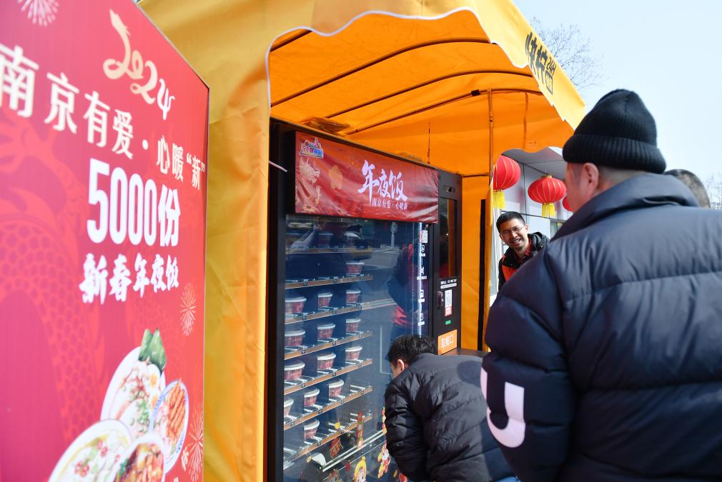 2024年2月9日,南京市交通运输局面向网约车司机、快递员等新业态劳动者开展“年夜饭”赠送活动。 新华社记者 柳文惠 摄
