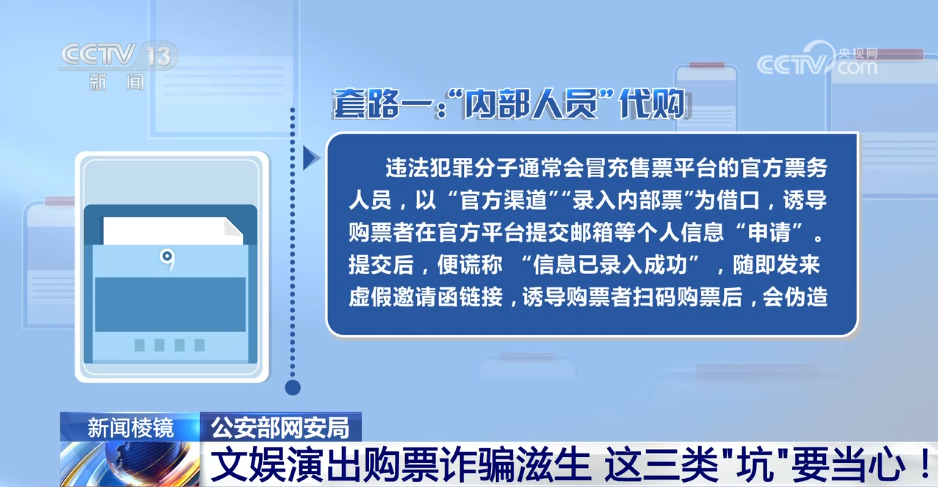 央视网消息:近期,文娱演出市场可谓热度爆表,但在音乐狂欢的背后,各类购票诈骗陷阱也悄然滋生。公安部网安局发布提示,这几类购票陷阱一定要小心,避免票务诈骗那些“坑”。