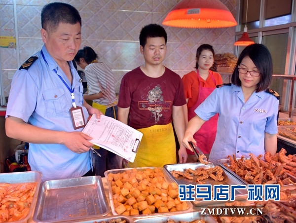 8月21日上午,正阳县永兴镇食药所工作人员正在对“骨里香”熟食品检查,确保“舌尖”安全。连日来,该所组织人员冒着炎热酷暑深入小餐饮店、小食品店、小作坊“三小”专项整治,对全镇17家“三小”门店进行了全面检查 ,排查问题14处,责令整改3家,办理小作坊登记证5家、从业人员健康证4人。(驻马店广视融媒通讯员 周素青 张华)