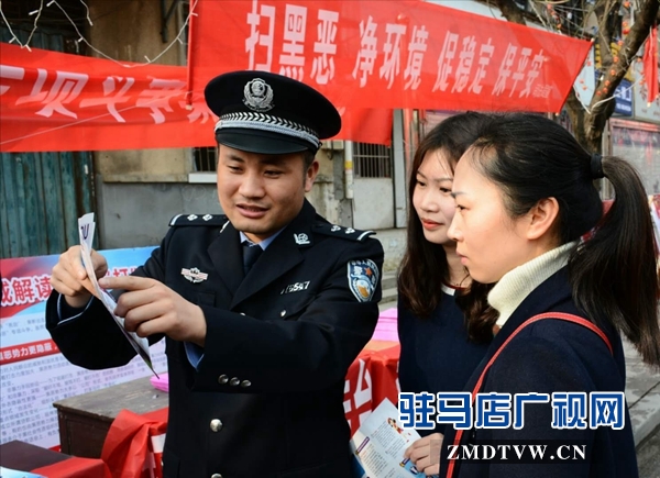 地毯式宣传扫黑除恶专项斗争,做到乡不漏村,村不漏组,组不漏户。该县把全国、省、市、县四级法院、检察、公安、司法四部门联合通告以及《正阳县扫黑除恶专项斗争举报渠道和有奖举报奖励办法的通告》等印制了10万份,在全县所有车站、宾馆、医院、商场、集市等广泛张贴;将该县明确的扫黑除恶专项斗争14种打击重点印制成宣传单,逐户向群众发放。
