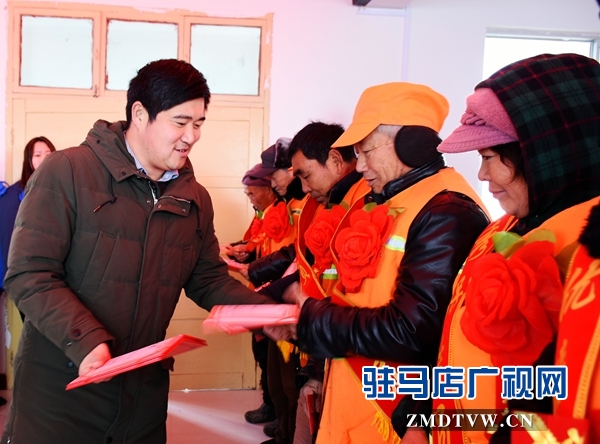 表彰大会上镇领导为23名优秀保洁员每人颁发了荣誉证书和奖金。正阳县沐豫环保清洁公司为109名保洁员发放大米、食用油春节慰问品。