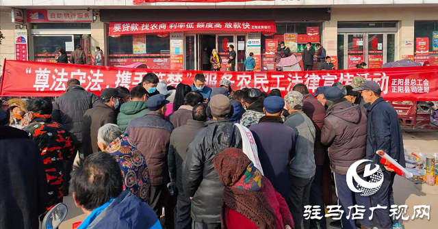 2月3日上午,正阳县总工会联合县司法局,在该县彭桥乡开展“尊法守法 携手筑梦”服务农民工法律服务进基层宣传活动。