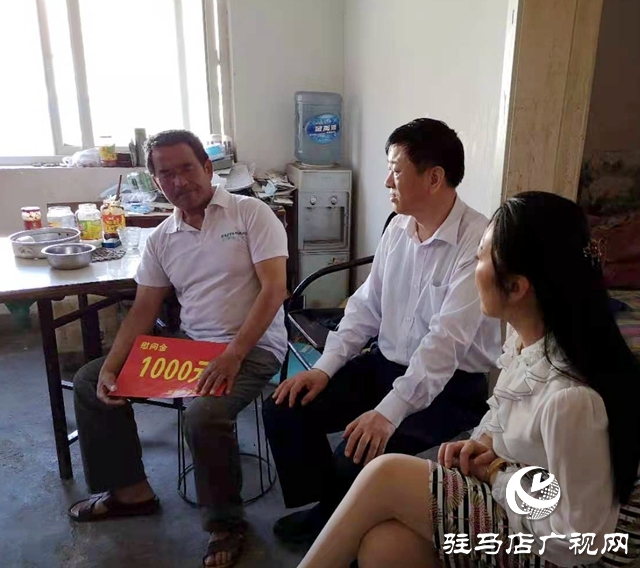 麻纺厂下岗职工崔中杰被医院检查出股骨头坏死,家中负担重、收入低;外贸公司下岗职工李德宝,妻子病故,自己还要照顾上中学的孩子;两人均属于特困职工。正阳县总工会工作人员来到他的家中,为每人送上1000元的慰问金,鼓励他们战胜困难,相信在党和政府及工会组织的关心支持下,生活会好起来的。