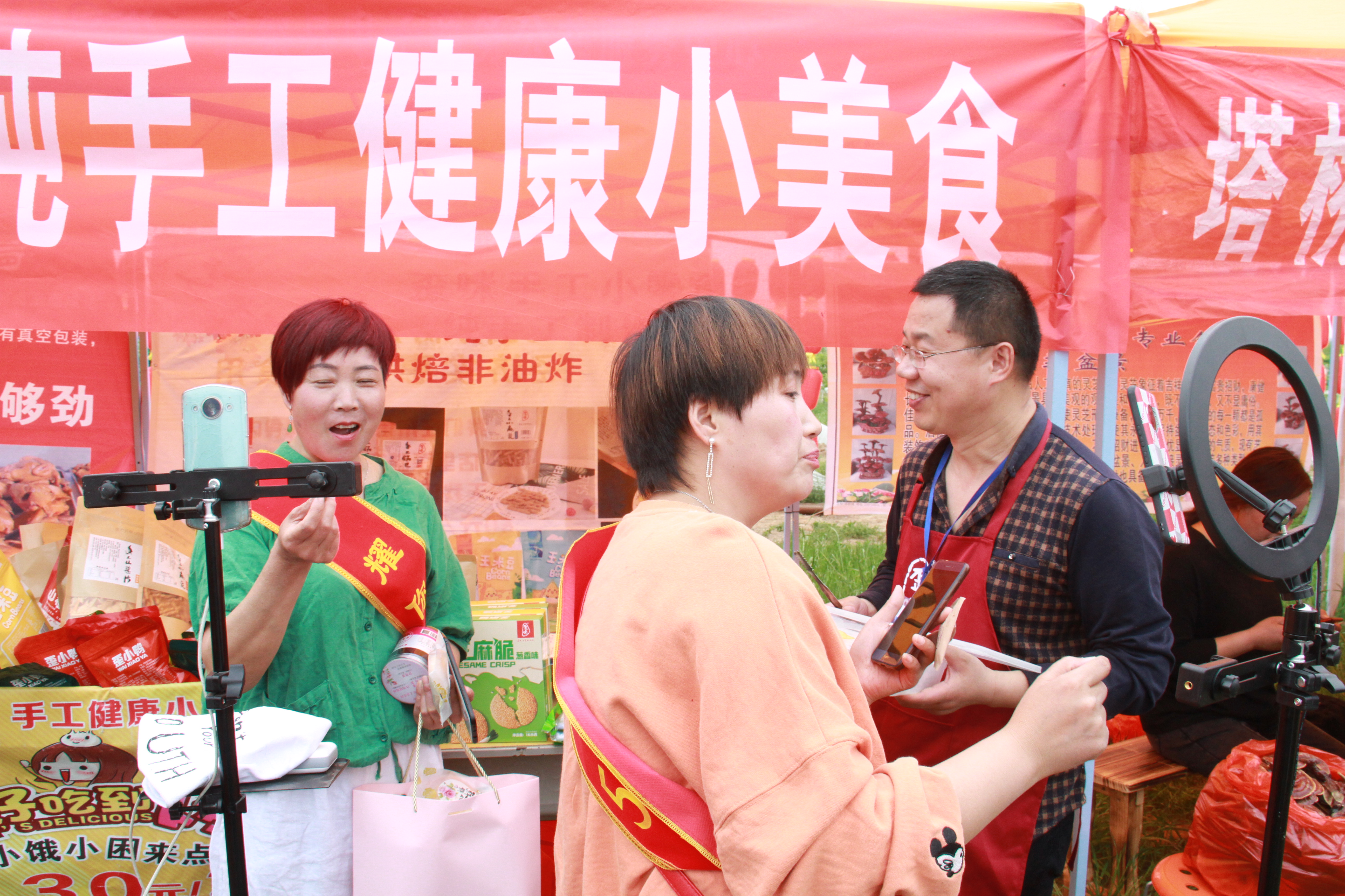 花姐结交到“慧慧”、“花果山”、“活水泉”等一批本地志同道合的伙伴,2019年下半年,花姐决定“出道”,带着一帮兄弟姐妹进军“直播带货圈”。