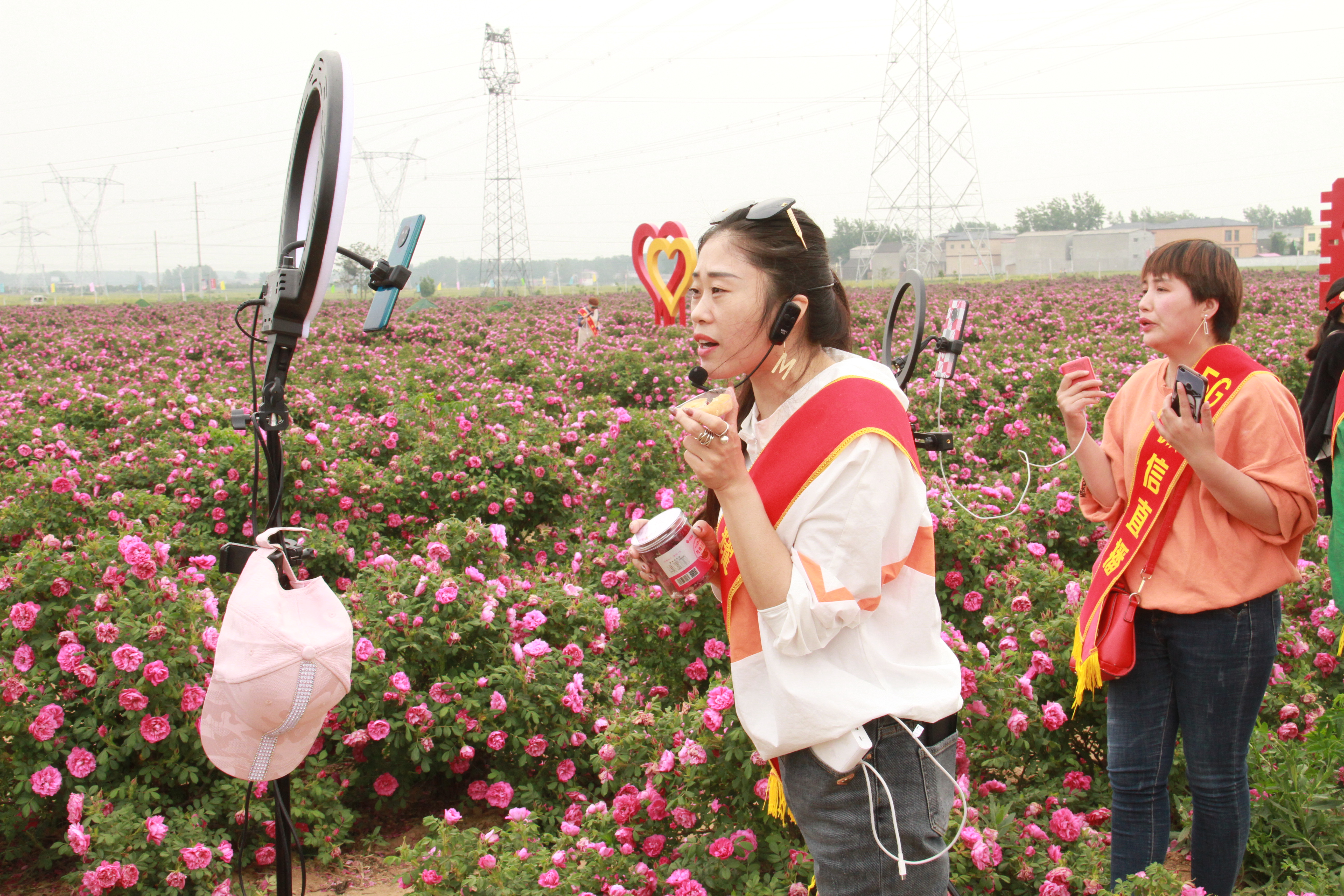 “亲们,这里是驻马店市上蔡县籽粒村玫瑰庄园,我们今天直播义卖带货,请点击关注,慧慧将会给大家带来意想不到的福利。”5月8日,上蔡县籽粒村首届玫瑰文化节现场,一支由农民、小商贩、留守妇女等组成的“草根直播团”引来众人围观。