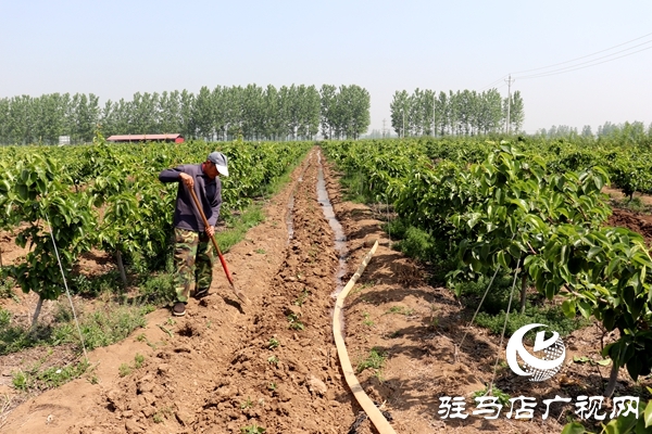 “在封土时一定要注意,一手拿红薯苗,另一手在薯苗中间处弯曲90度,从垄面顶部向下按2寸深,然后覆土压严,使红薯秧水平入土3~4个节,土上露出1~2个节,这样栽的红薯结薯多。”5月9日,在汝南县板店乡板店村一块梨园,几名群众正在梨树行间移栽红薯苗,有的挖穴,有的放苗,有的封土,有的浇水,一派繁忙景象,梨园主人李伟一边忙着转运红薯苗一边进行技术指导。