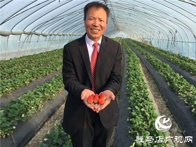 室外寒气逼人,室内温暖如春,在佘杨付的草莓大棚内,黄白相间的小花,红身绿裙的草莓格外诱人,佘杨付的妻子捧起鲜艳的草莓展示给记者观看,脸上露出喜悦自豪的表情。