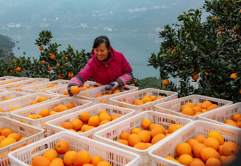 2020年12月27日,湖北省秭归县水田坝乡下坝村村民在整理即将出售的脐橙。