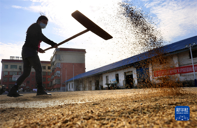1月30日,江西省宜春市靖安县雷公尖乡虎山村种粮大户李春花在晾晒早稻良种。新华社发(徐仲庭 摄)