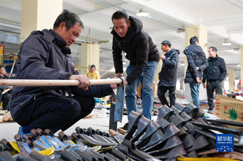 1月29日,人们在广西金秀瑶族自治县桐木镇农贸市场选购农具。新华社发(高如金 摄)