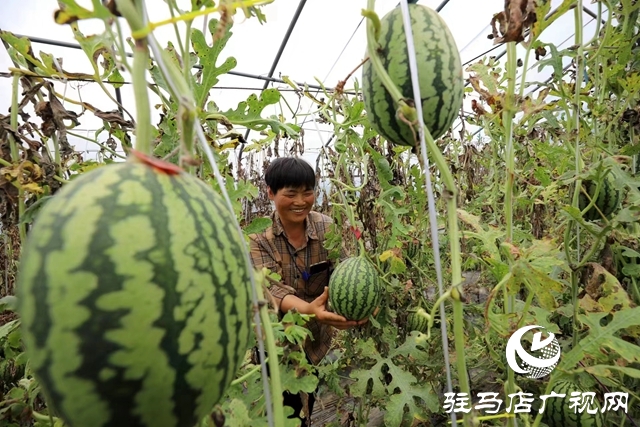 香甜的瓜果、醉人的田园。6月16日,走进位于老乐山脚下的驻马店市驿城区朱古洞乡柴坡村,一座座设施大棚里,只见一排排藤蔓沿着搭好的棚架爬到一人多高的空中,光鲜翠绿、外形溜圆的西瓜挂满藤蔓,格外诱人,形成了一片“西瓜林、致富果”。