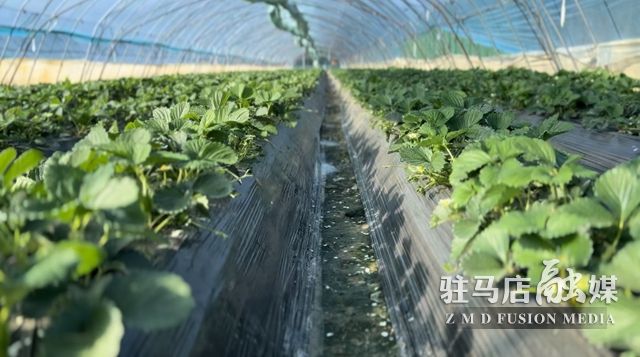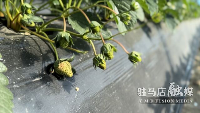 在驿城区苗庄村的草莓种植基地,工人们正在忙着修剪草莓多余的枝叶,一颗颗青涩的小草莓蓄力待发,准备迎接采摘季。
