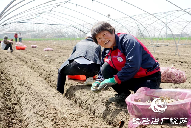 3月19日,沿笔直的乡道进入驻马店市新蔡县栎城乡周湾村委,首先映入眼帘的是40余栋熠熠生辉的生姜大棚。农历二月初正是种姜的时节,基地负责人王海洋正带领20余名工人挖沟、打垄、种姜母、喷洒营养液,热火朝天,忙中有序。