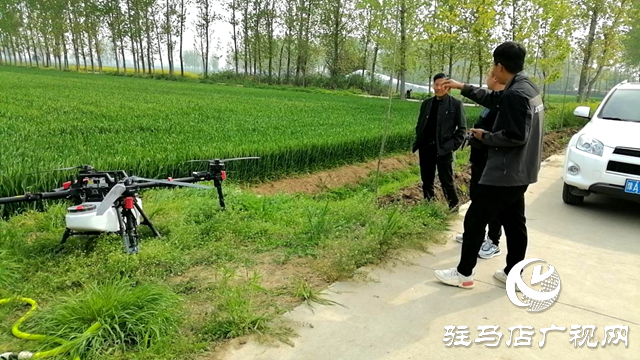 “嗡嗡嗡……”4月15日,在汝南县板店乡苏庄村一块麦田,田间绿油油的小麦已进入抽穗扬花期,4架植保无人机在很多人的瞩目下腾空而起,沿着麦田匀速飞行,旋翼下巨大的气流推动药液均匀散开,精准地洒向麦苗,为小麦披上了“防护衣”。