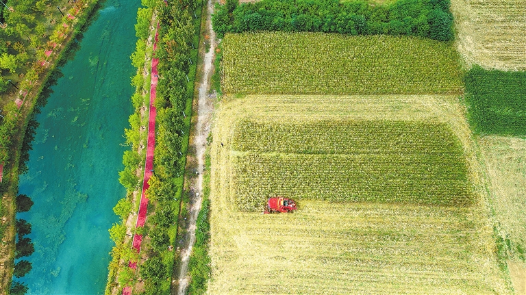 9月10日,漯河市源汇区阴阳赵镇大楼魏村的农民抢抓农时,收获成熟的玉米,确保秋粮颗粒归仓。本报记者 聂冬晗 摄