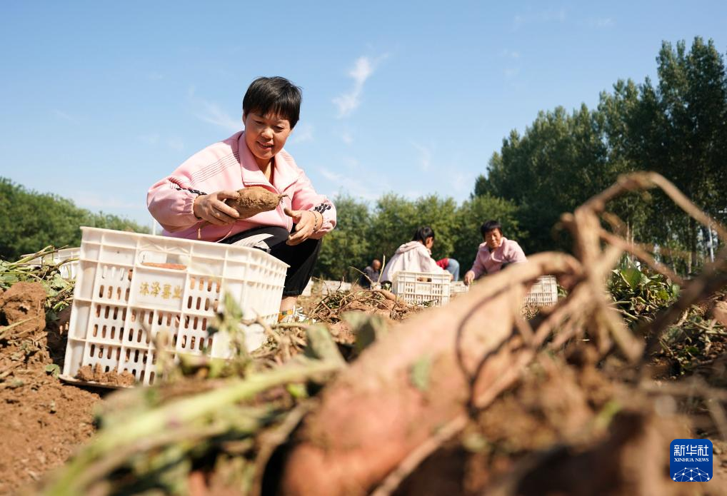 10月4日,河北省邯郸市邱县后段寨村村民在采收红薯。