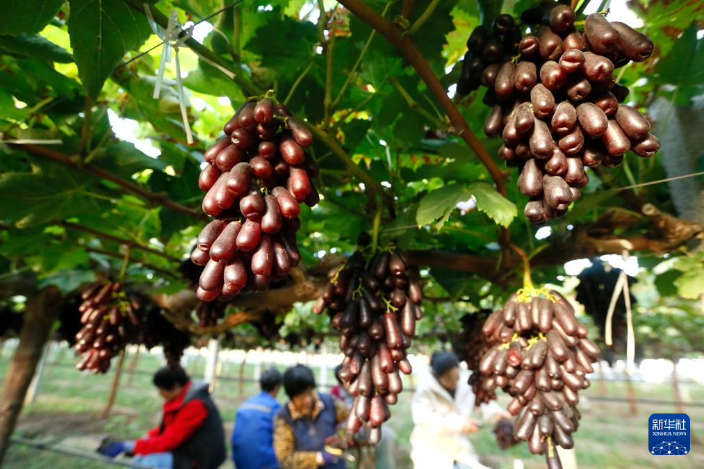 10月4日,山东省青岛市即墨区金口镇一个葡萄种植基地的果农在分拣葡萄。