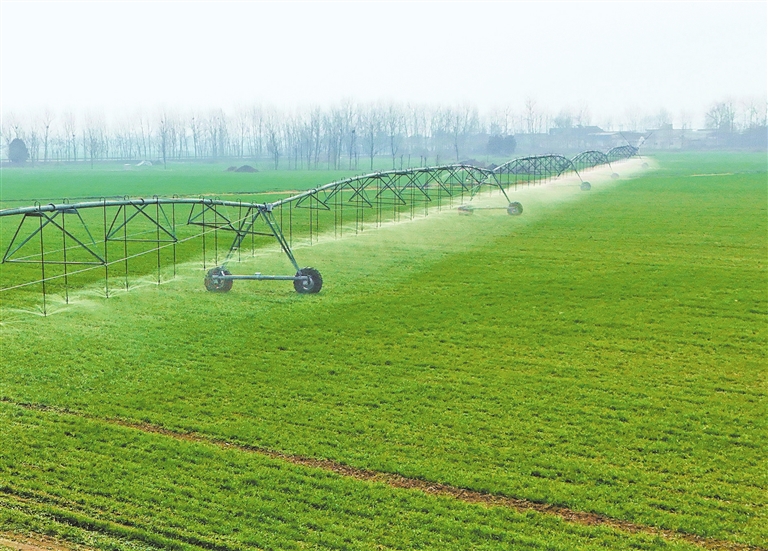 2月25日,洛阳市孟津区会盟镇扣马村,种粮大户组织农机驾驶人员对承包的麦田集中进行田间管理。郑占波 马绍磊 摄