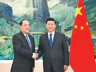 九月十一日,国家主席习近平在人民大会堂会见新当选并获中央政府任命的澳门特别行政区第五任行政长官贺一诚。