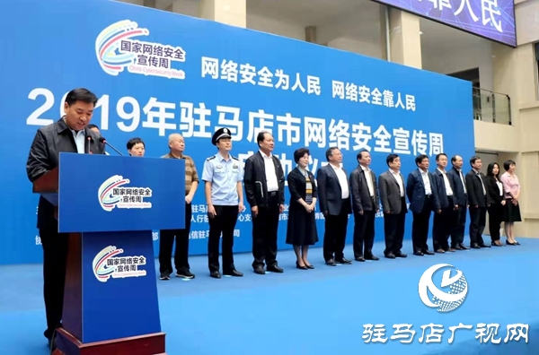 驻马店广电融媒体消息: 9月18日上午,2019年驻马店市网络安全宣传周启动仪式在黄淮学院举行。市委常委、宣传部长戚存杰,市政协副主席苗炳启,黄淮学院党委书记李国胜出席启动仪式。市委网络安全和信息化委员会成员单位的主要负责同志、互联网行业代表和新闻界代表等200余人参加启动仪式。