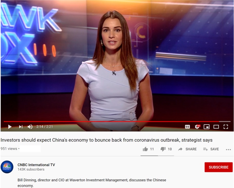 美国消费者新闻与商业频道认为,“投资者可以期待中国经济将从新冠疫情中反弹回来。”