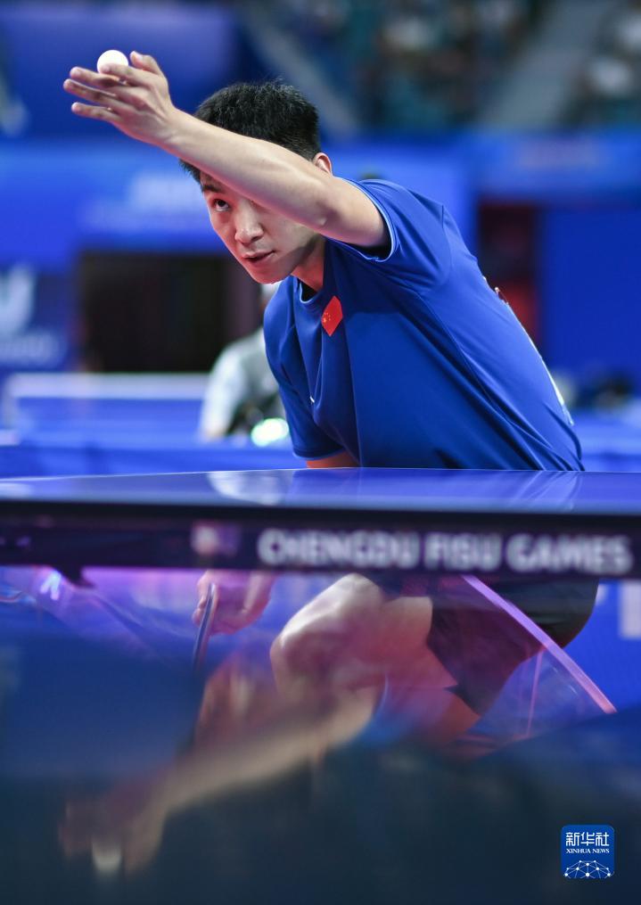当日,在成都举行的第31届世界大学生夏季运动会乒乓球比赛男子团体赛决赛中,中国队以3比0战胜中国台北队,获得冠军。