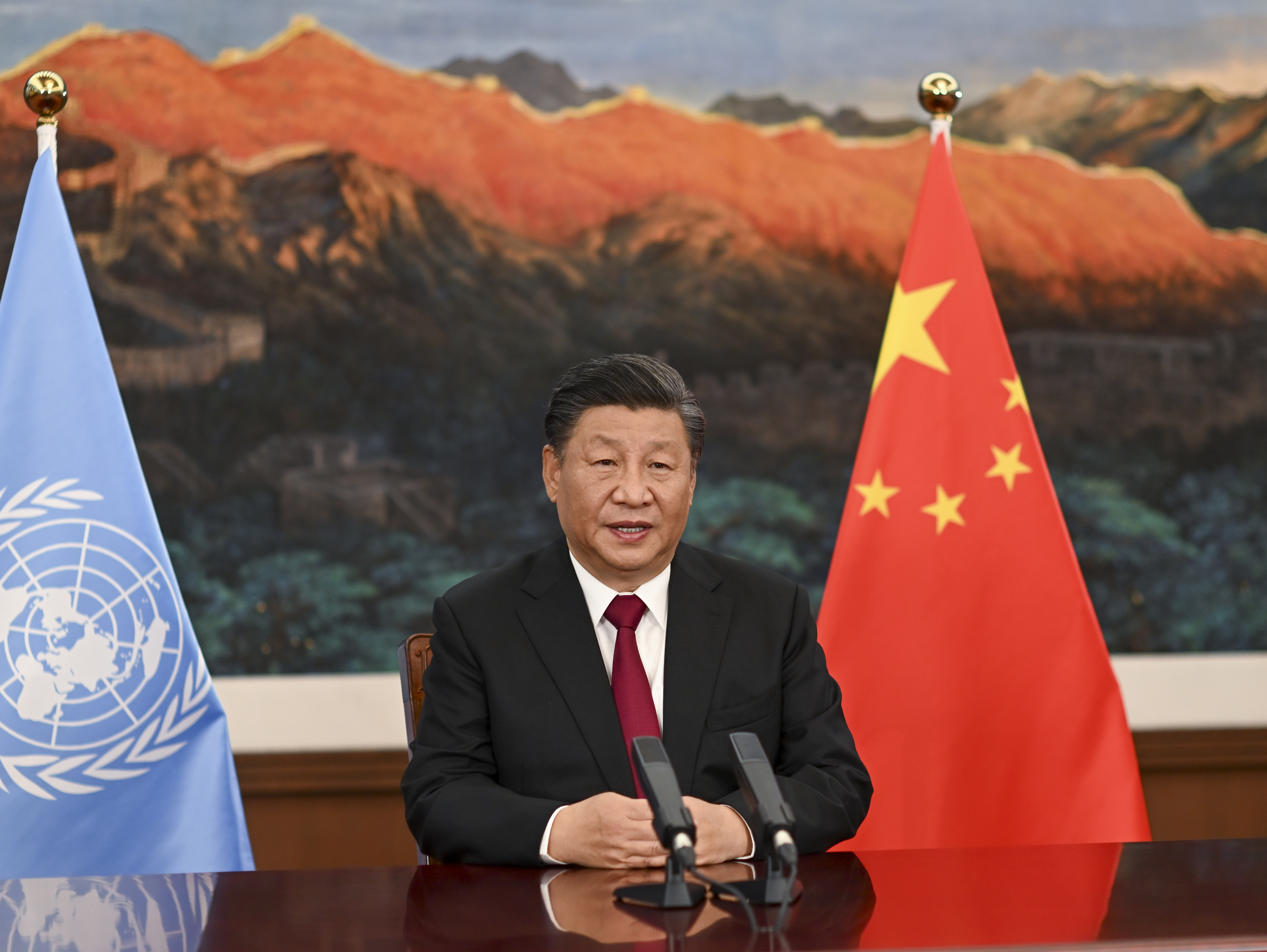 2021年10月12日,习近平主席以视频方式出席《生物多样性公约》第十五次缔约方大会领导人峰会并发表主旨讲话。 新华社记者 李学仁 摄