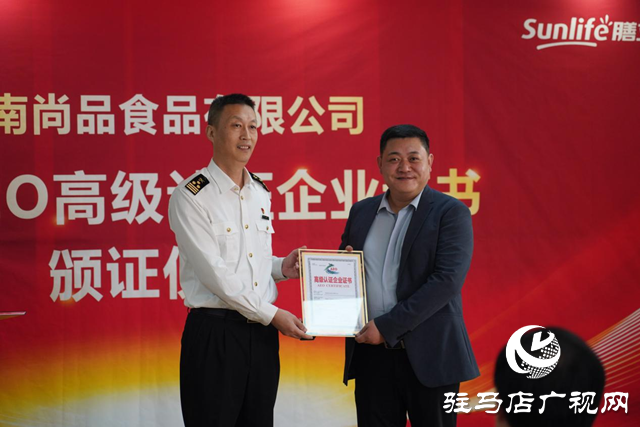 10月14日,海关AEO高级认证企业证书颁证仪式在驻马店高新区河南尚品食品有限公司举行。河南尚品食品有限公司是驻马店市第一家海关AEO高级认证企业。市政府副市长孙继伟出席并讲话,高新区党工委书记、管委会主任张卫东及市发改委、市商务局、驻马店海关、高新区管委会分管负责同志出席仪式。