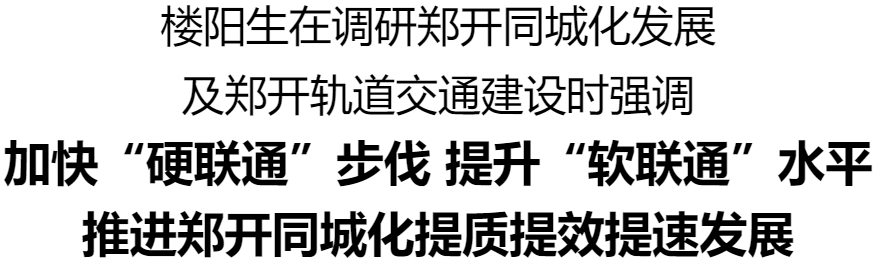 12月25日,省委书记楼阳生到郑州市、开封市,调研郑开同城化发展及郑开轨道交通建设工作。