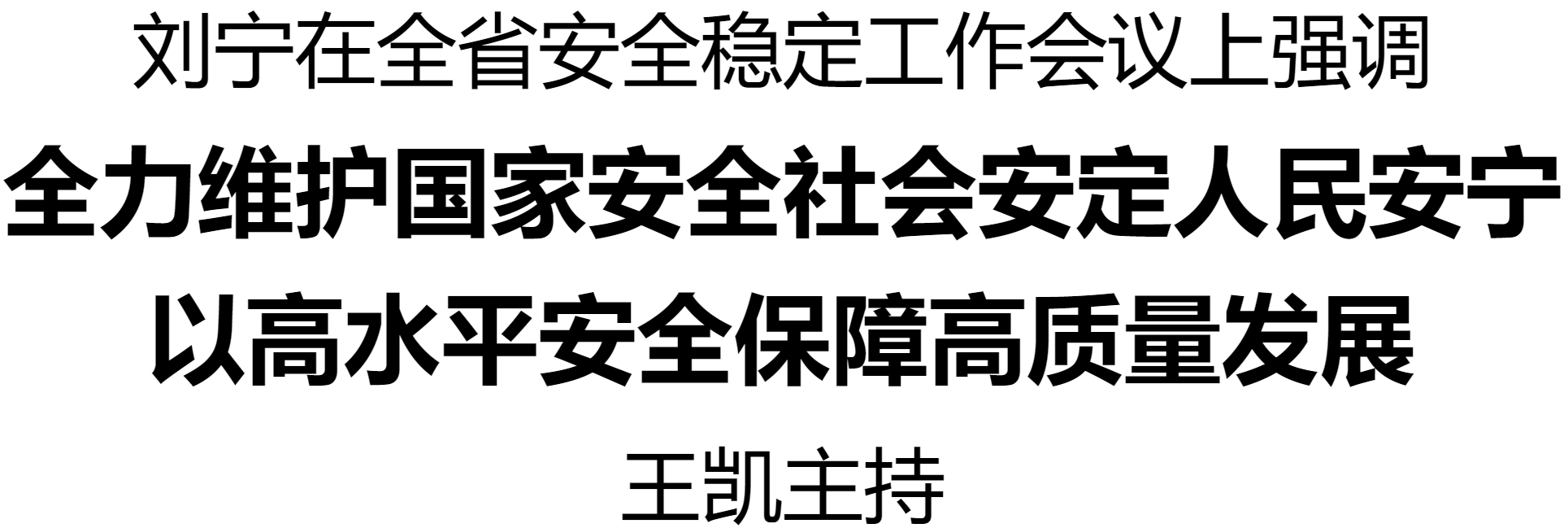 1月8日,全省安全稳定工作会议在郑州召开。省委书记刘宁出席会议并讲话,强调要深入学习贯彻习近平总书记关于安全稳定的重要论述和关于河南工作的重要讲话重要指示批示精神,全面贯彻总体国家安全观,以“时时放心不下”的责任感,扎实做好全省尤其是岁末年初的安全稳定、民生保障工作,全力维护国家安全、社会安定、人民安宁。省长王凯主持会议。