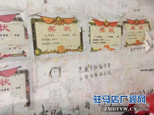 虽然家境贫寒,父母都不识字,但户梦焕和三姐户梦瑶却乖巧懂事,勤奋好学,家里的墙上贴满了她俩的奖状。