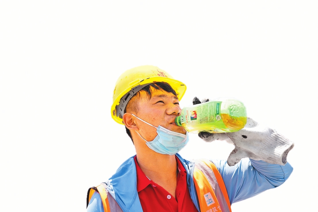 连日来,郑州市持续高温天气,中原科技城智慧产业创新园嵩山实验室项目施工现场,建设者坚守施工一线,确保项目如期交付(6月25日摄)。河南日报记者 聂冬晗 摄