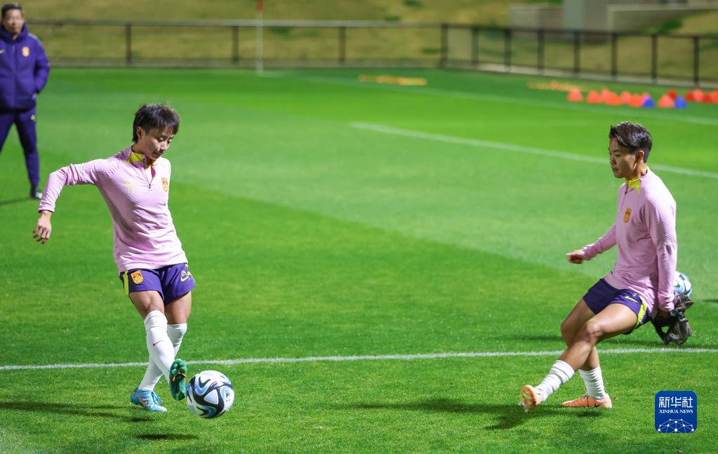 当日,中国队在澳大利亚阿德莱德进行赛前训练。她们即将于8月1日在此迎战2023年国际足联女足世界杯小组赛最后一个对手英格兰队。