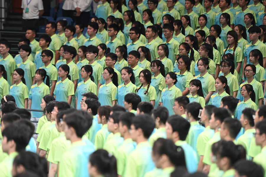 8月24日,在杭州亚运会倒计时30天之际,杭州亚运会、亚残运会赛会志愿者出征仪式在浙江大学紫金港校区体育馆举行。1800名赛会志愿者代表在现场向全世界发出邀约——“来吧,朋友!”